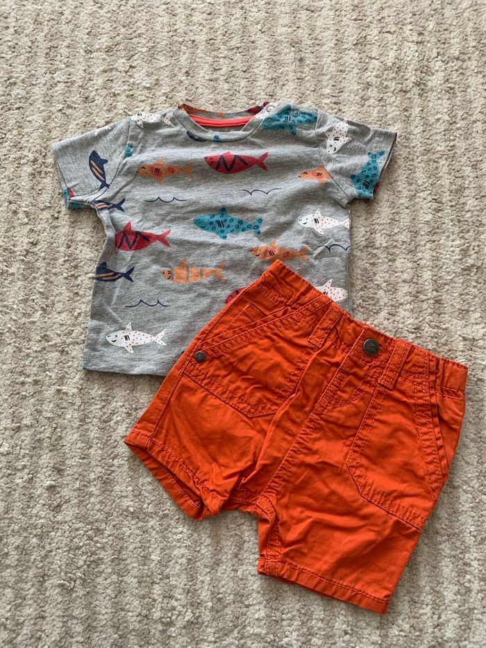 Tenue 3 mois été Tee shirt poisson et short Très bon état Plusieurs vêtements disponibles dans cette taille 🌺