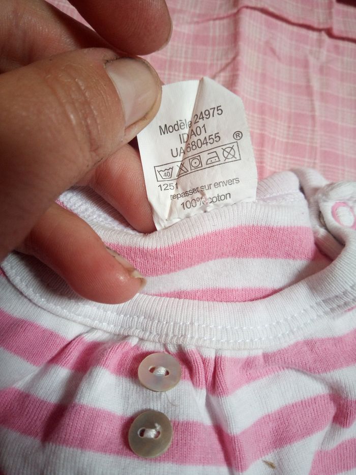 Bont vend pyjama été pour fille il y a une tâche 3 ème photo sinon en bon état en 12 mois.