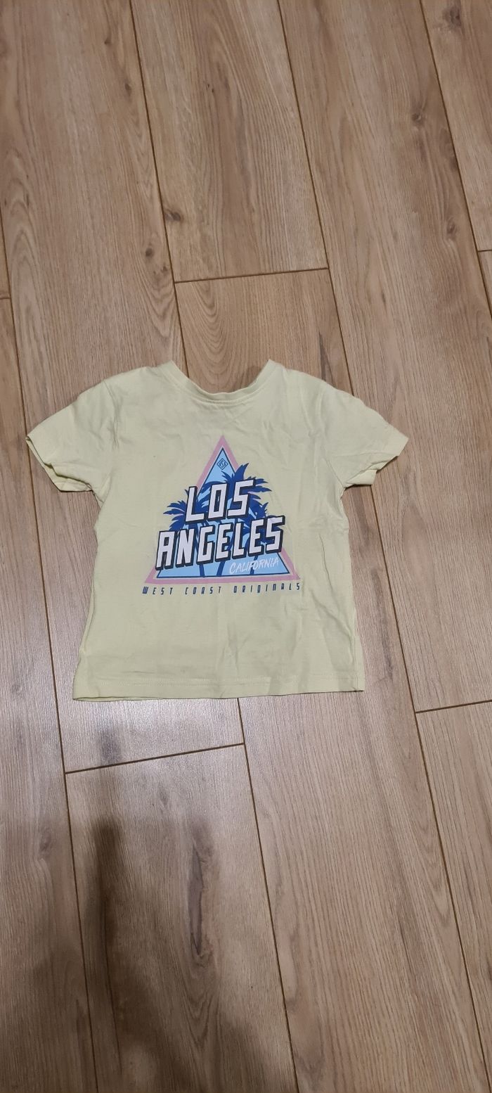 Tshirt jaune pastel à motif Los Angeles bon état Marque : primark Taille: 2-3ans / 98 cm