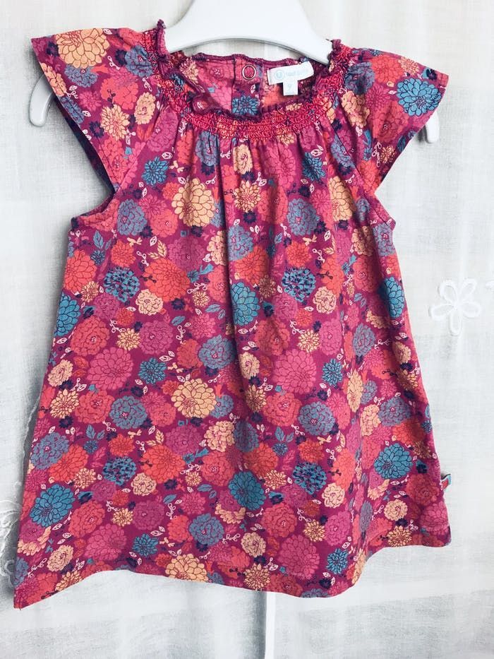 Tunique fuchsia fleurie smocks sur l’encolure grande patte pressions milieu dos taille 9 mois Collection U Tapez Jjzn9mois dans la loupe pour voir mes autres annonces dans cette taille