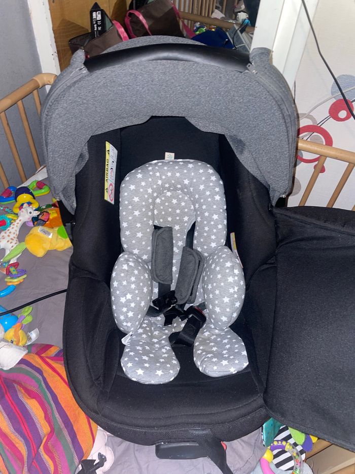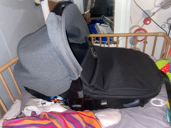 Pour dette, cosy Jane matrix ligth 2 avec habillage de pluie, réducteur d’origine + un réducteur ou bébé va se sentir mieux dedans. Cosy qui s’en serre et qu’on peut utiliser dans une chaise haute également