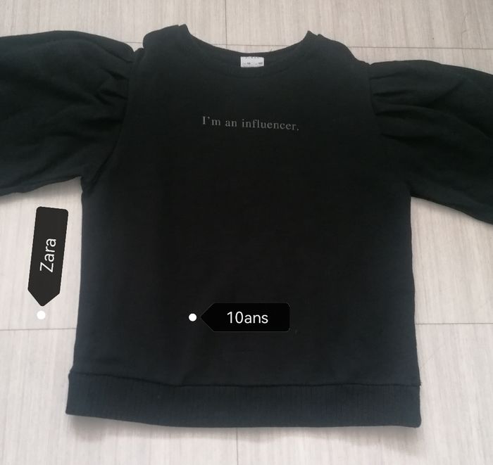 Pulls filles. 10ans Zara. Noir. Manches bouffantes niveaux épaules. 100%coton. Porté en très bon état général. 7€