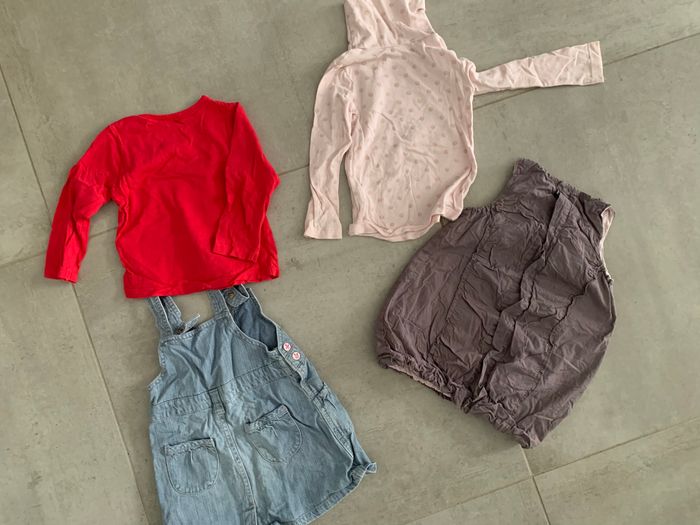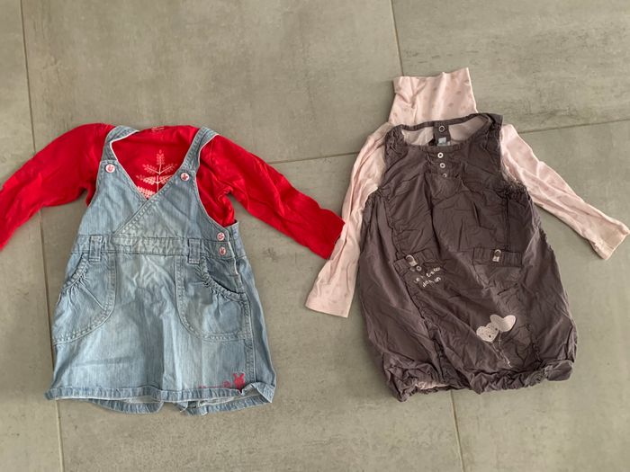 Teeshirt rose fushia marque obaidi Teeshirt rose clair marque et obaidi (taille 24 mois) Robe marron marque petit kimbaloo Robe en jean de marque autre