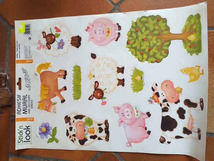 Bonjour, Je vends des stickers neuf. Thème ferme. Les 2 stickers sur les 2 dernières photos ne se décollent pas, c est le papier qui se décolle. C est 2 stickers seront à décoller par le bas. Un autre lot de stickers ferme dans mes annonces. Possibilité de le récupérer à Paris, Noisy le grand ou brie comte Robert dans le 77. Cordialement