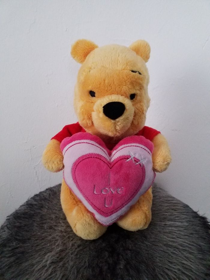 Peluche winnie l’ourson avec son petit cœur rose, très douce Excellent état