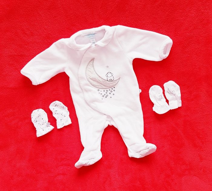 🌸 Pyjama + 2 paires de moufles anti-griffures - Obaïbi - 1 mois 🌸 - photo numéro 2