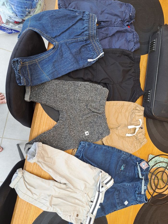 Lot de 8 pantalons 7 en 12 mois 1 en 6 mois mais qui taille très grand, mis à mon fils quand il mettait du 9-12 mois