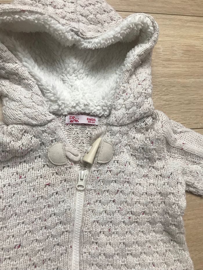 Gilet zippé capuche moumoute DPAM 6Mois beige chiné
