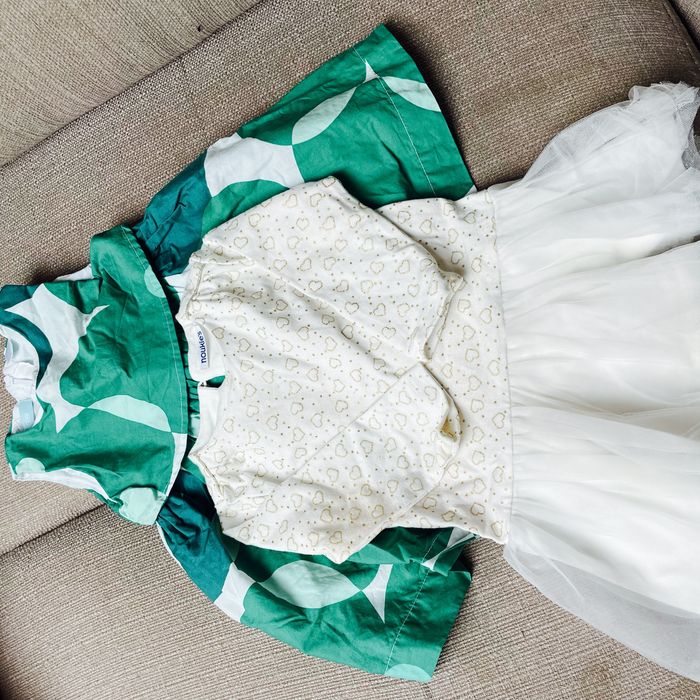 Je vends 2 très jolies robes pour petites filles de taille 6 mois : la blanche de la marque Nookies et la verte de la marque Obaibi. Elles n’ont jamais eu l’occasion d’être portées et elles aimeraient trouver une adorable princesse pour les sublimer.