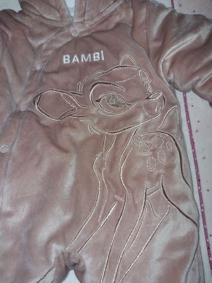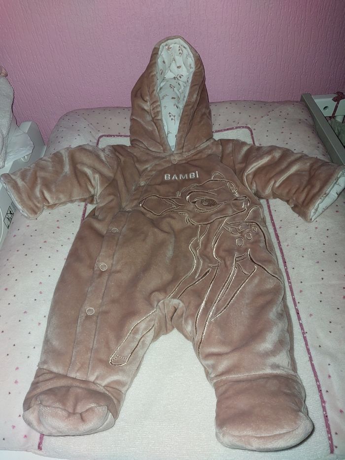 Comme neuve Combinaison bambie mise 2 ou 3fois (la 1ère juste pour la sortie de maternité, le temps du trajet voiture) et juste pour les visites médicales jusqu'à ses 1 mois et demi après le retour à la maison depuis elle est trop petite et stocker dans son placard Pour la couleur regarder la deuxième photo.