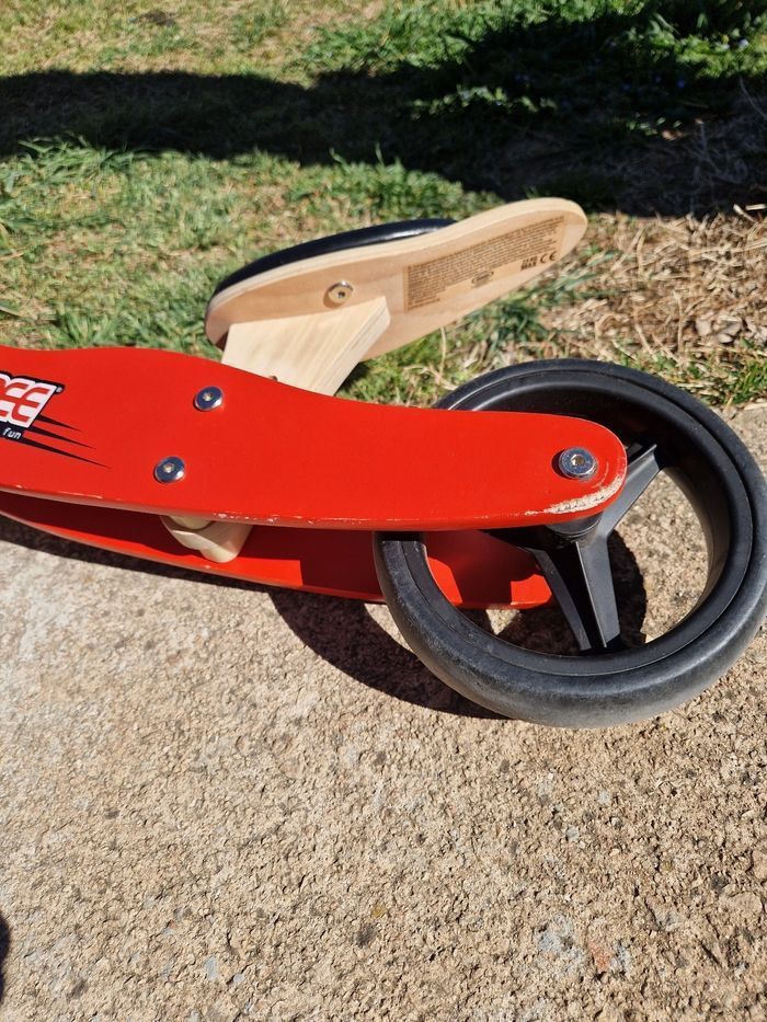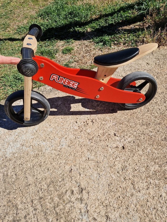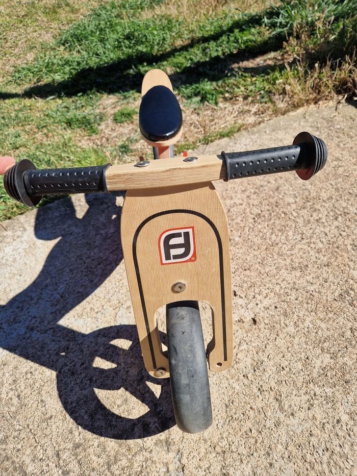 Draisienne en bois Funbee Guidon sécurisé pour éviter la chute Selle confortable et rembourré, réglable en hauteur Pneus EVA souples, ce qui la rend plus agréable et sûre pour l'enfant En tbe hormis quelques marques, voir photo Convient pour les moins de 3 ans / - 25kg Nb : il manque une vis devant en bas, utile juste en décoration