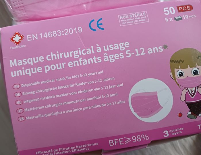 Boite 50 masques jetables rose taille enfant - photo numéro 6