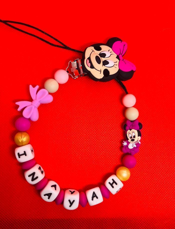 Attache tétine personnalisé en silicone ou en bois au souhait de l’acheteur . Personnalisable au choix de l’acheteur que ce soit la couleur comme le prénom ou le thème . Le fil est doublé pour plus de sécurité tout le long de l’attache tétine. N’hésitez pas à me demander et regarder mon dressing. Une photo vous sera envoyée avant l’expédition pour vous ayez un aperçu du rendu. Tous les produits sont réalisés avec du materiel spécial conçu aux bébés , enfants.