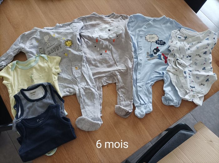 3 pyjamas été 1 body manche longue 1 body manche courte Sergent Major 2 body sans manche (ceux là taille un peu petit)