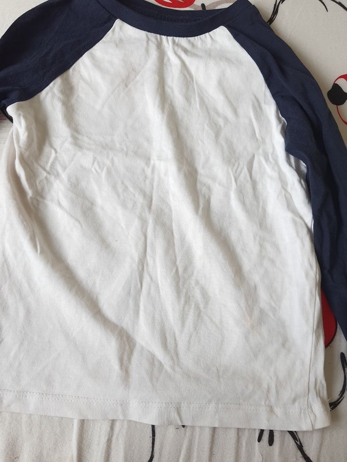 Le haut blanc présente quelques taches mais le bleu est en très bon état