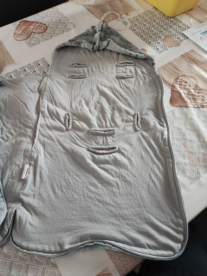 Un nid d'ange 0-6mois. Matière polaire . Semble léger mais est bien chaud . 10€ .