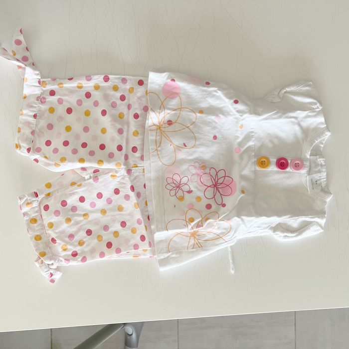 Très bel ensemble fille été en 6 mois Très bon état Blanc a pois rose et orange