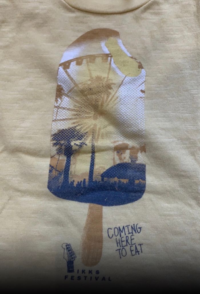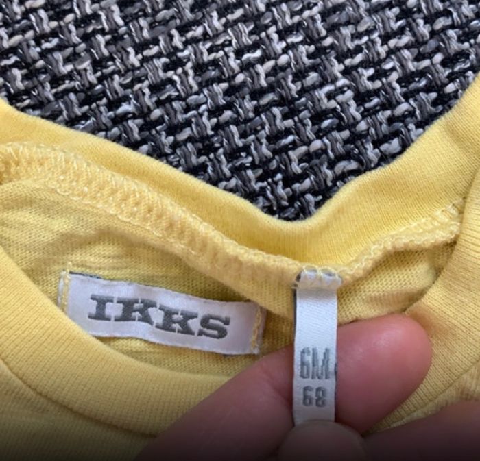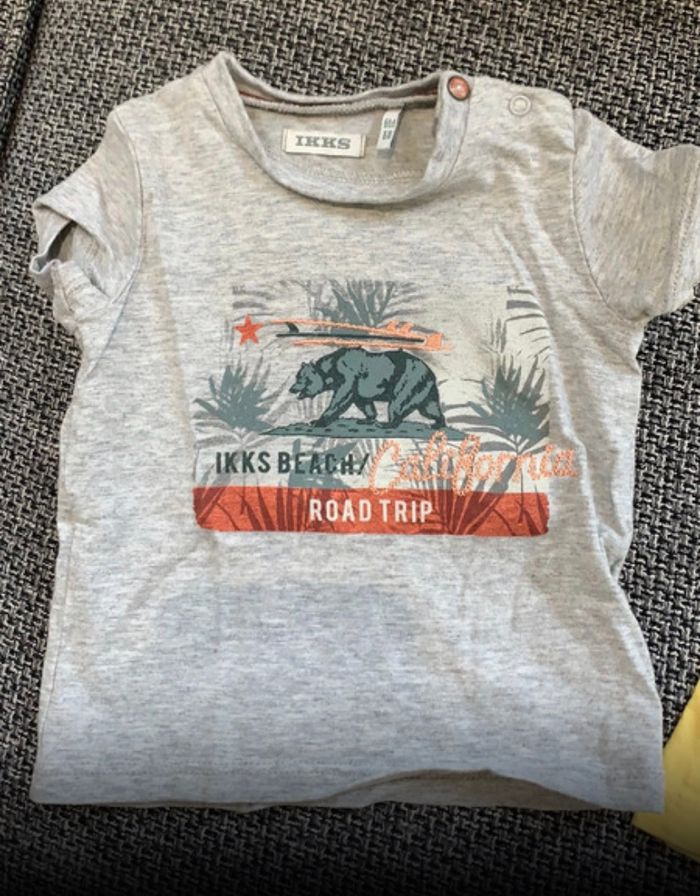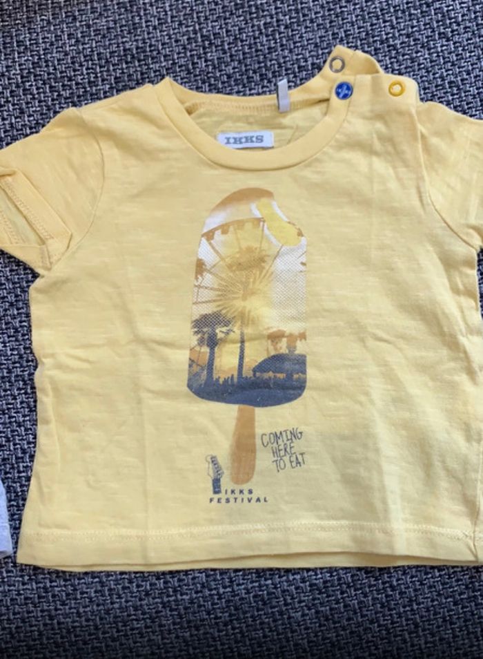 - un tee-shirt gris imprimé ours, manche courte en très bon état - un tee-shirt jaune imprimé glace, manche courte en très bon état IKKS, 6 mois, bonne qualité
