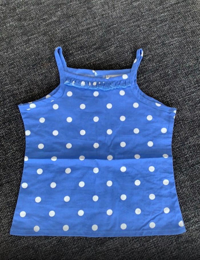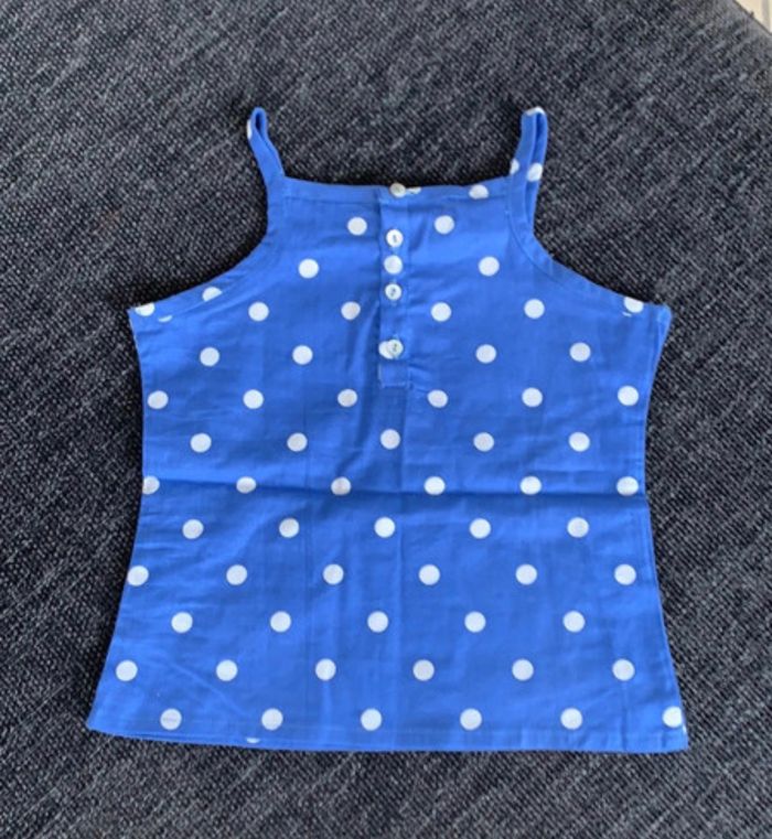 Débardeur acanthe bleu dur avec pois blanc 3 ans Neuf sans étiquette En coton + un bouton de rechange