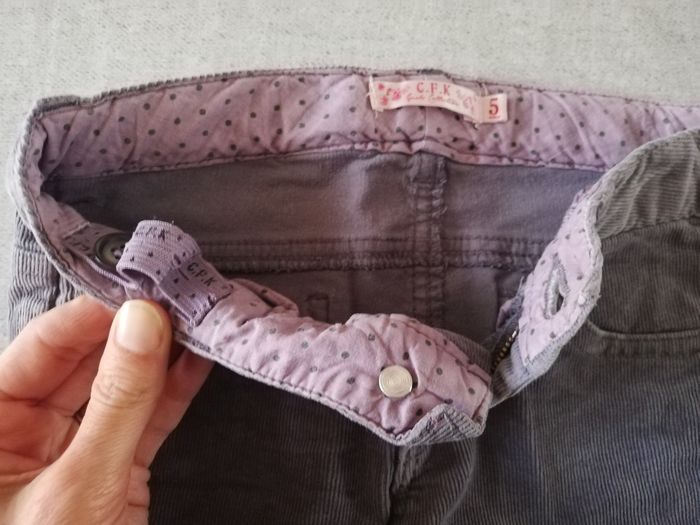 Couleur exacte : Mauve grisé. État impeccable du velours sans marque d usure au niveau des genoux. Taille réglable par élastique à la taille.