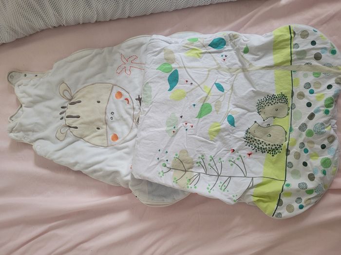 Vend lot de gigoteuses de toute et de la taille 3 à 12 mois. Il y a 11 articles. Pour toute les saisons, hiver, été, demi saison. Elles sont de toute marque. J off la combinaison hiver.