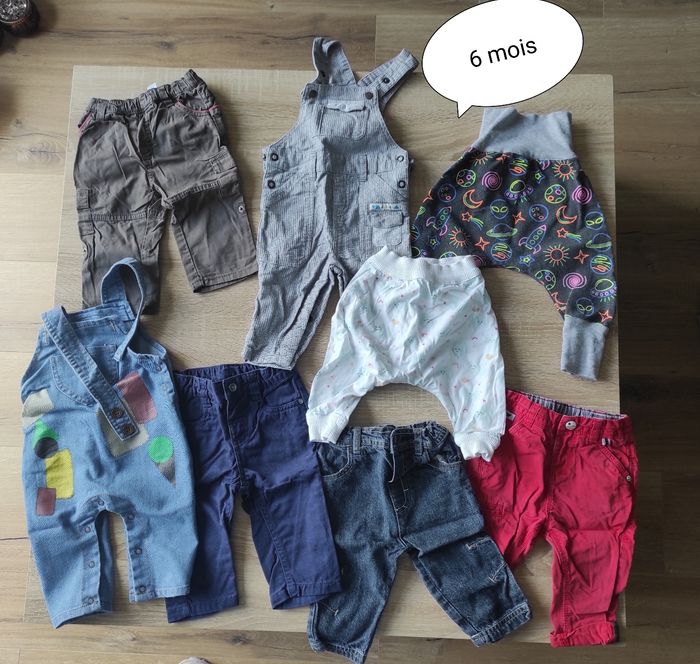 Bonjour À vendre pantalons légers, taille 6 mois, en bon état. Différentes marques (obaibi, grain de blé, orchestra, TAO...)