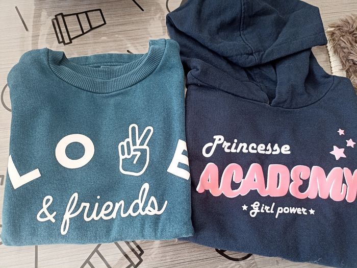 Lot de 2 sweats en très bon état dont 1 avec capuche+ 1 gilet sans manche Taille 8 ans