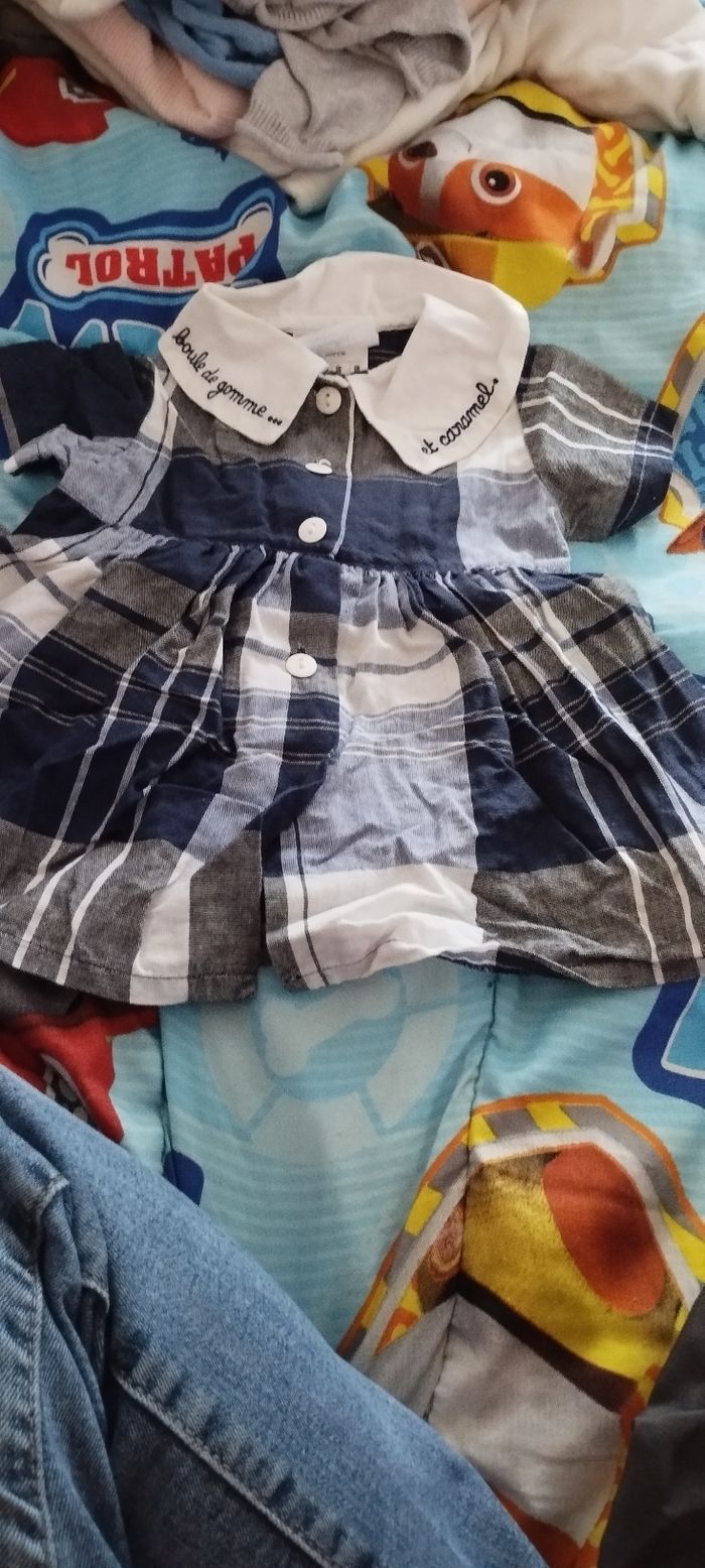 Robes en taille 3 mois en très bon état Une en Lulu castagnette Une en minouflet Deux en marque Gémo Quatre en marque Kiabi