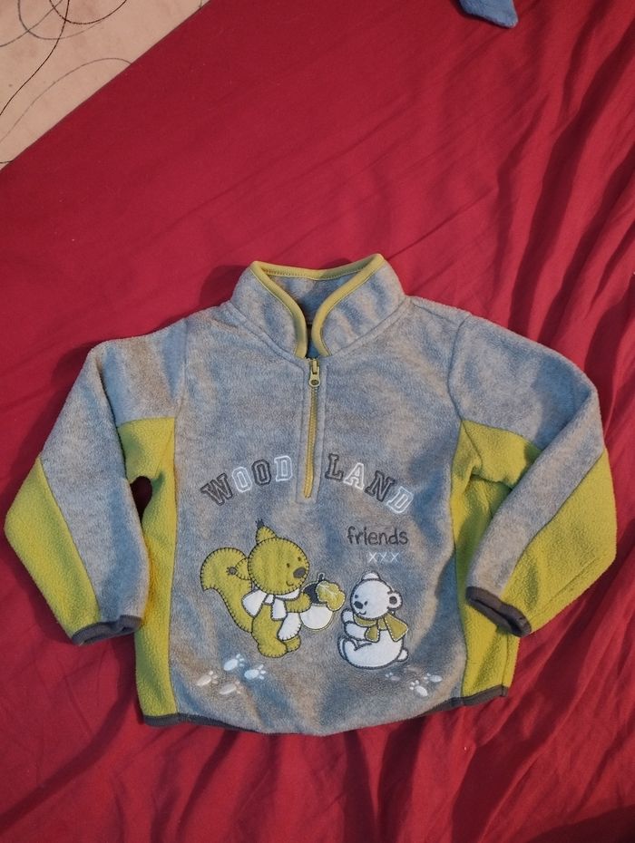 Pull polaire sweat avec nounours gris et vert anis 23 mois