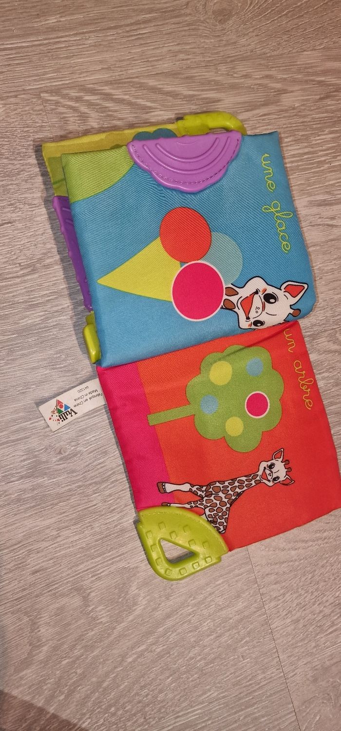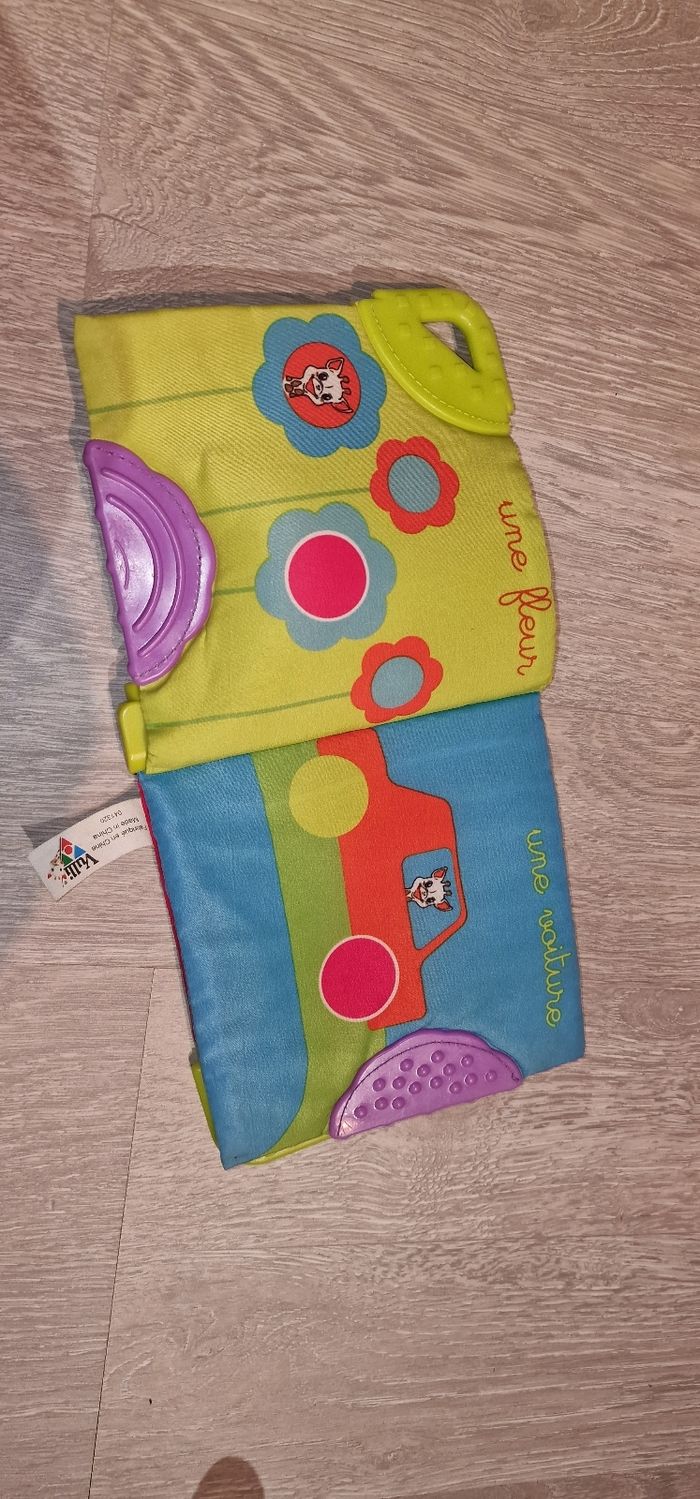 Livre en tissus avec des coins de différentes texture, en très bon état