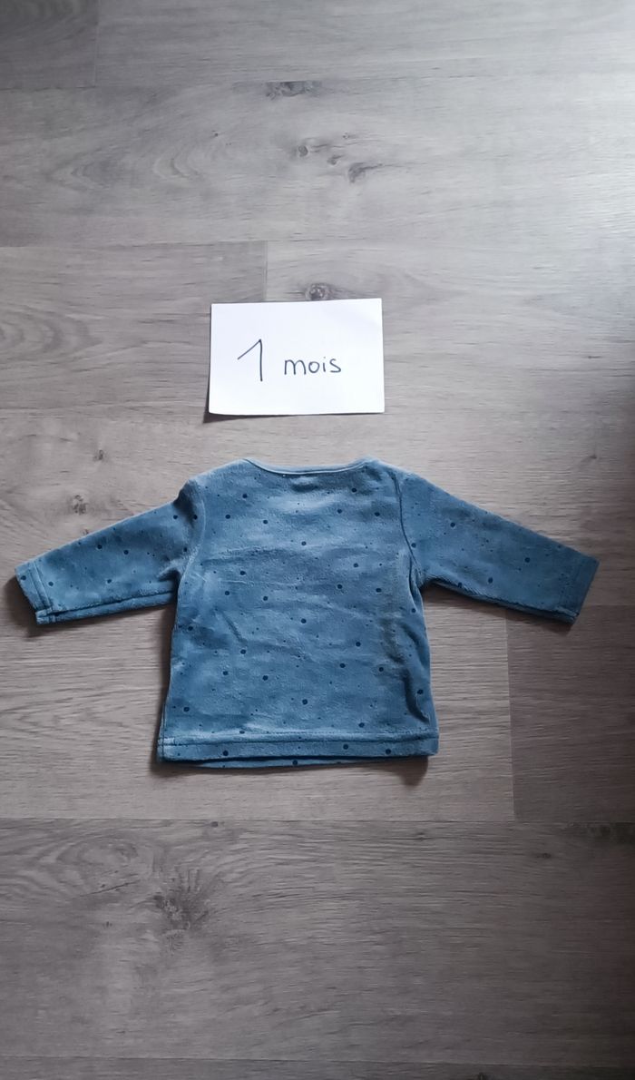 T-shirt épais bleu taille 1 mois en très bon état