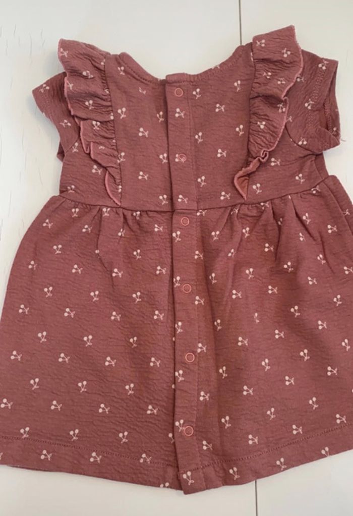 Robe manches courtes motif cerise fermeture par bouton à l’arrière Kiabi taille 6 mois Très bon état