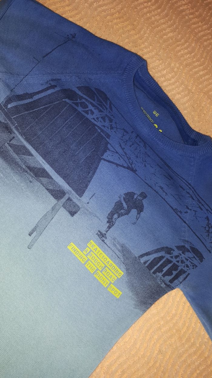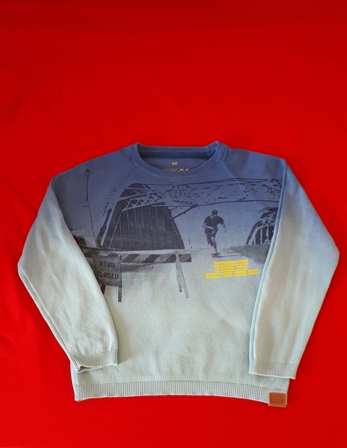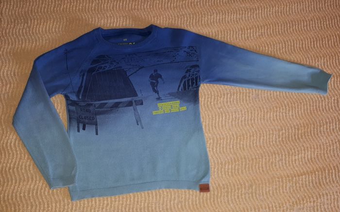 Dressing trié : #vte1_sixans (dressing 6 ans garçon) Joli #pull demi-saison #bleu et #turquoise clair WE. ▫️Motif devant. ▫️En très bon état général. ▫️Taille : 6 ans (110-116 cm). ▫️Mesures : ✅ Longueur : 44 cm ✅ Largeur sous bras : 36 cm ✅ Longueur manches jusqu'au cou : 42 cm #spiderman #tshirt6ansgarçon #6ans #sixans #spiderman6ans
