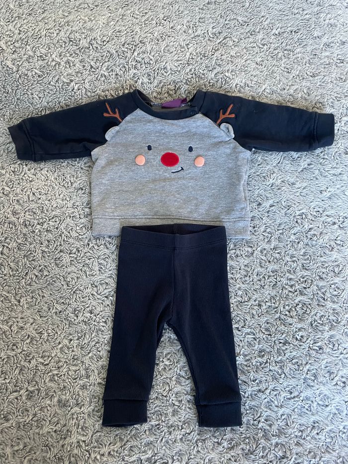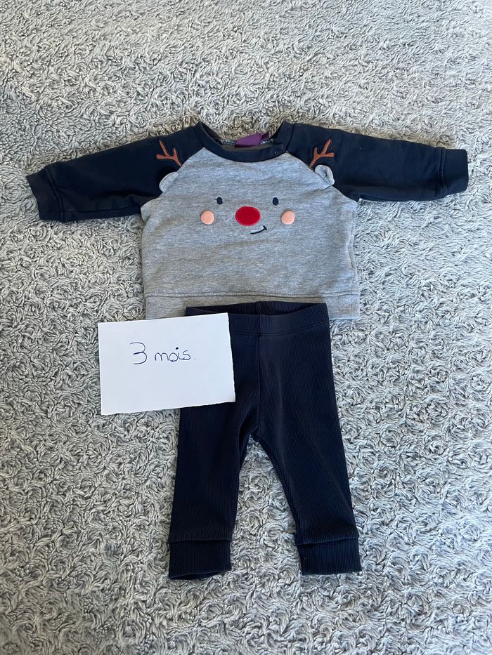 Ensemble sergent major 3 mois Sweat avec pression au col Legging bleu marine Très bon état Gris bleu marine