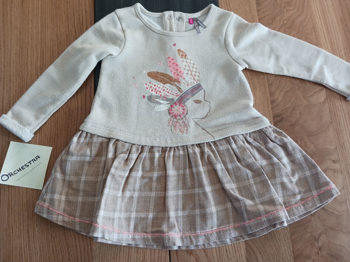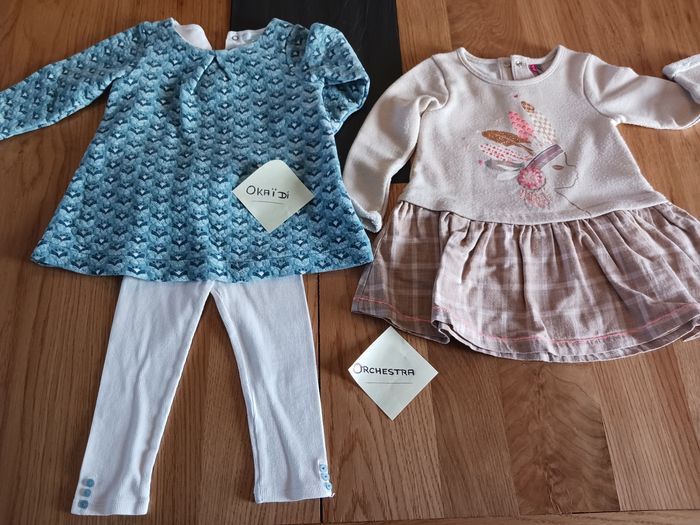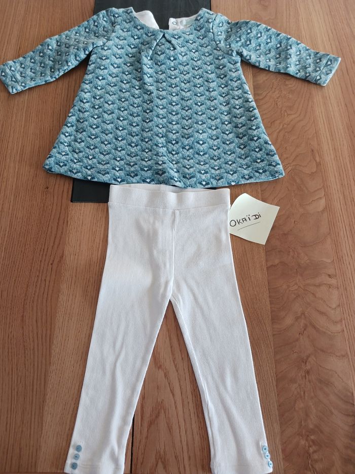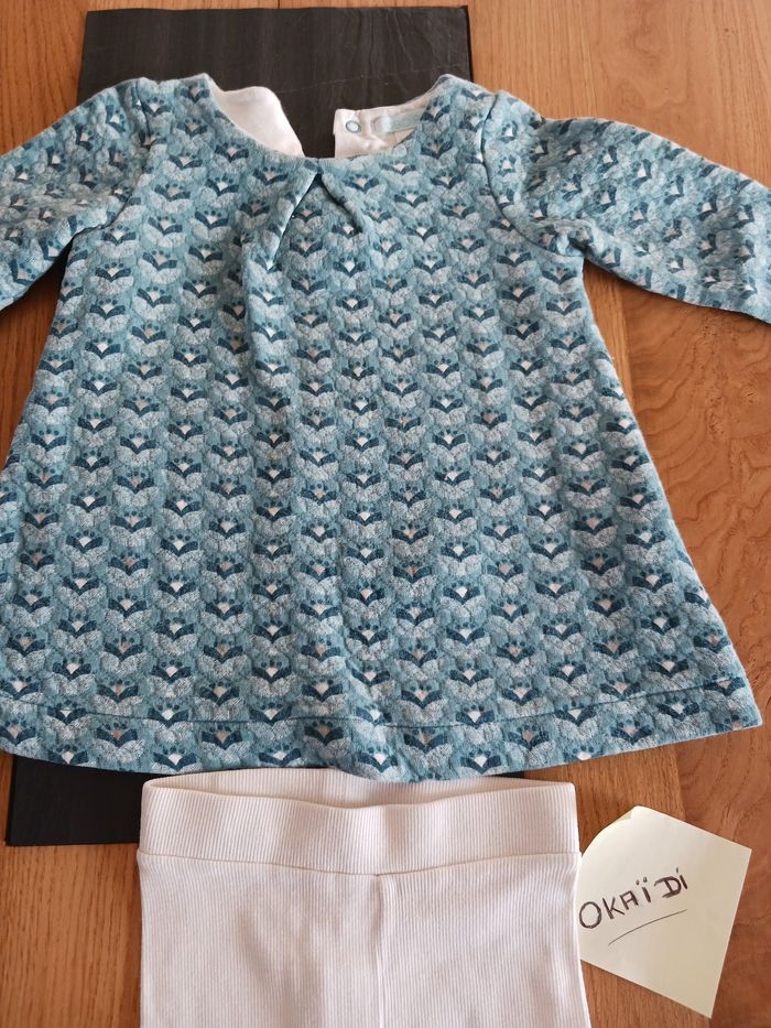 Ensembles: - blouse longue un peu épaisse Okaïdi + legging - robe manches longues Orchestra motif indien doré un peu épaisse