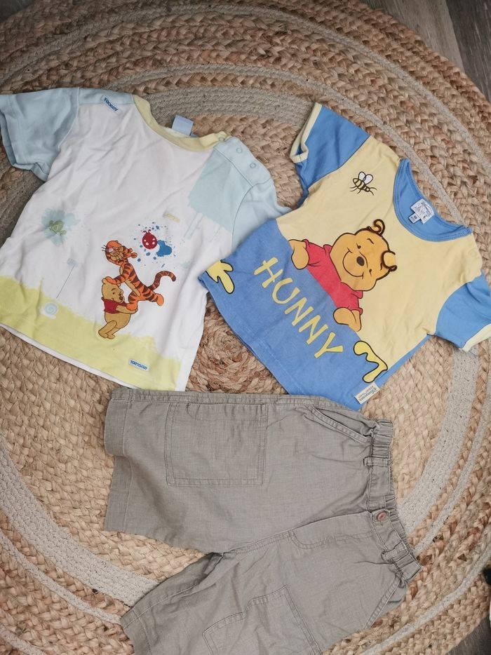 2 t-shirts Winnie l'ourson 1 Bermuda en lin taupe (verbaudet)