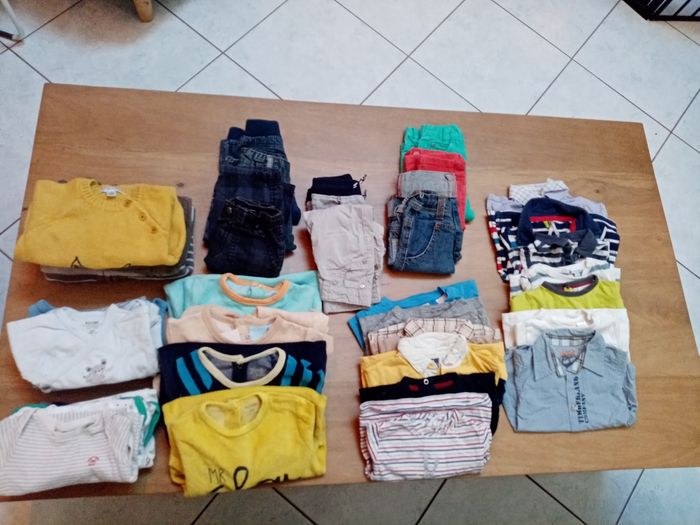 Automne hiver Bon état 8 bodys manches longues 3 gilets 1 pull 4 pyjamas 8 pantalons 13 tee shirt manches longues Marques tape à l'œil kiabi timberland...