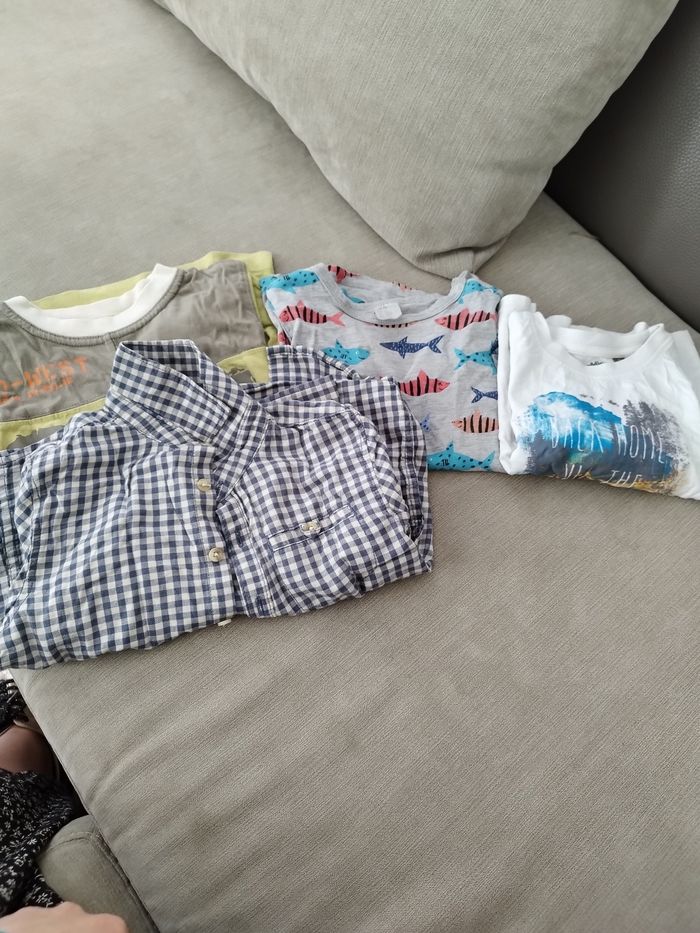 Lot de tee shirts 2 manches courtes et 1 manches longues et 1 chemise