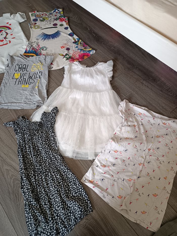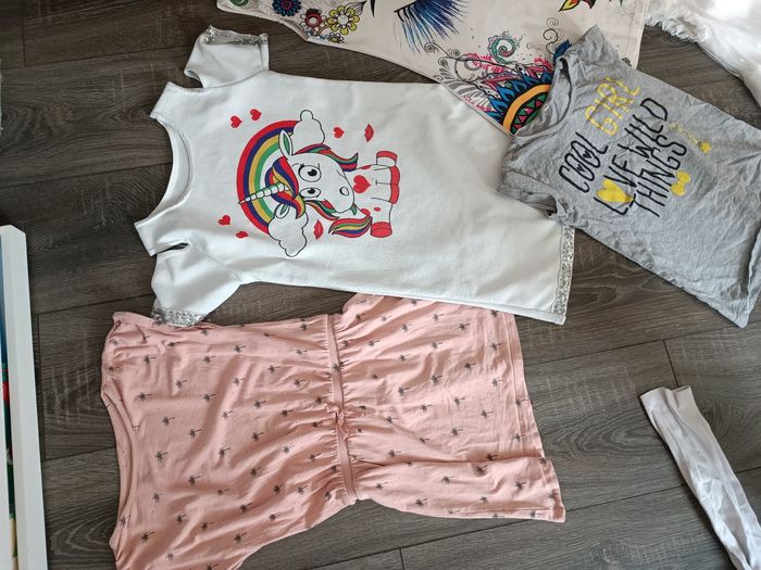 Bonjour, Je vends ce lot pour fille en 8 ans : - 1 tee shirt MC - 1 Robe tee shirt MC avec dessin licorne - 1 robe tunique rose imprimé ( Verbaudet) - 1 robe imprimé colorée - 1 robe cérémonie ( tape à l'oeil ) - 1 combishort ( tape à l'oeil) - 1 chemise de nuit ( tape a l'oeil)
