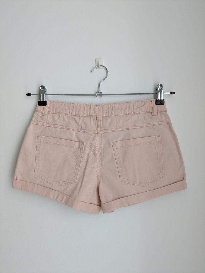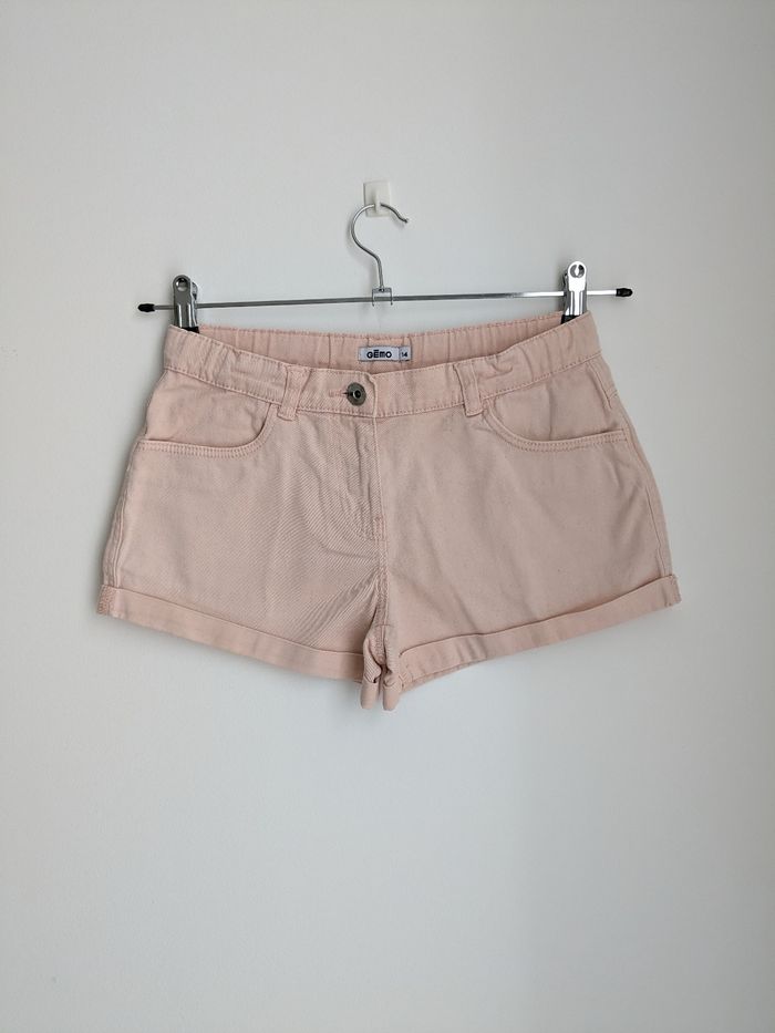 Short rose Gémo 14 ans, ajustable à la taille. Fermeture bouton et fermeture zippée.