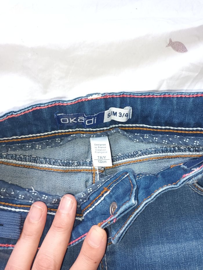 Pantalon 7 ans en très bon état. Ceinture ajustable avec élastiques. Pantalon 3/4 idéal pour l'été.