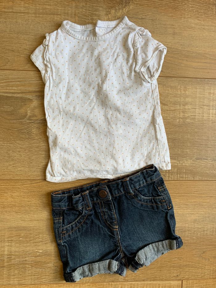 Tee shirt 12 mois et short en jean’s 9 mois de chez kiabi