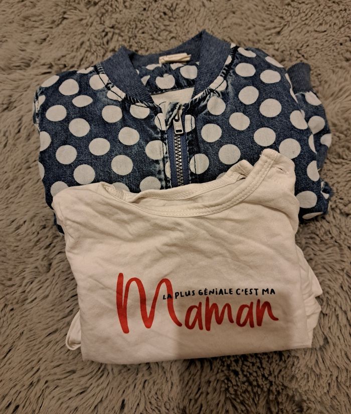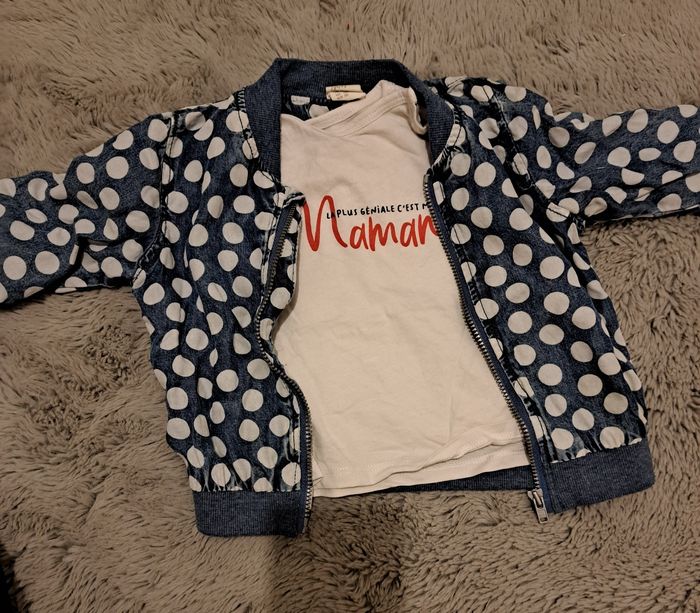 Veste légère style bomber à pois H&M Tee-shirt manches courtes taille 6 mois "la plus géniale c'est ma maman"