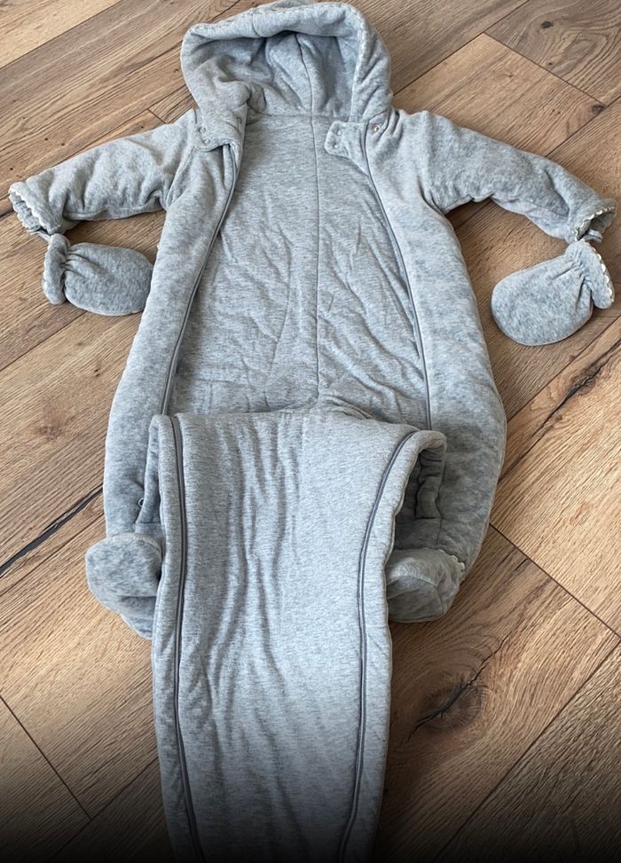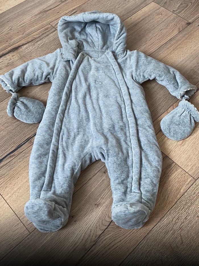 Combinaison 12 mois avec moufles intégrées Peuvent être enlevé car est tenu avec des boutons Excellent état
