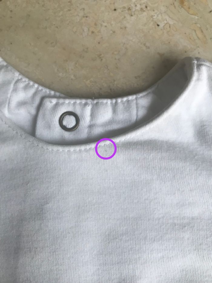 ROBE BOULE DE LA MARQUE "CATIMINI". Coloris : Blanc avec motifs imprimés multicolores. Taille : 12 mois. Encolure arrondie. Fermeture par 5 pressions l'arrière. Elastique dans le bas, ce qui lui donne un léger aspect bouffant. Doublée. Matière : 100 % coton. D'occasion en bon état (pas de trous ni d'accrocs, juste une toute petite trace, pas plus grosse qu'une tête d'épingle au niveau de l'encolure de l'avant --> j'ai entouré l'endroit sur la photo).