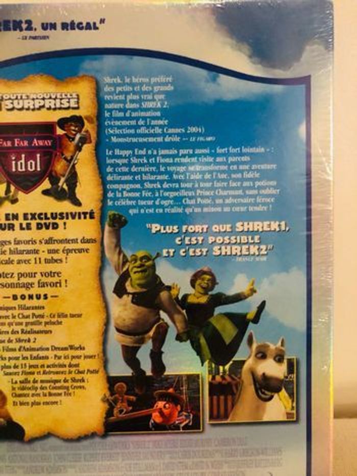 Achat aujourd’hui ? 👉🏻 Départ du 📦 demain ! DVD dessin animé Shrek 2 Etat: neuf sous plastique Boitier dans pochette cartonnée brillante. Contient des bonus.