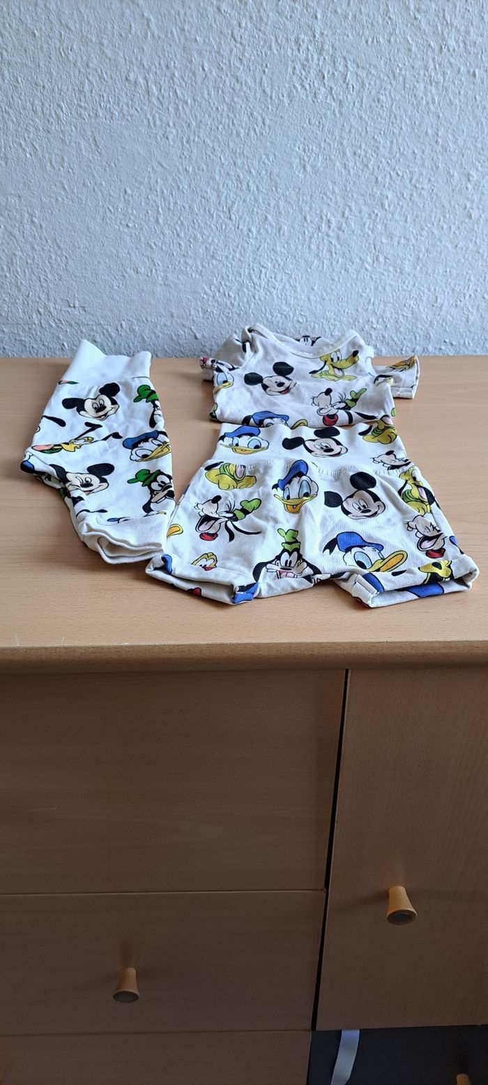 Je vends cet ensemble Mickey bodies et pantalon c'est taille 1 mois 56 cm Le pantalon est un peu tache au niveau du haut. Possible de vente séparément