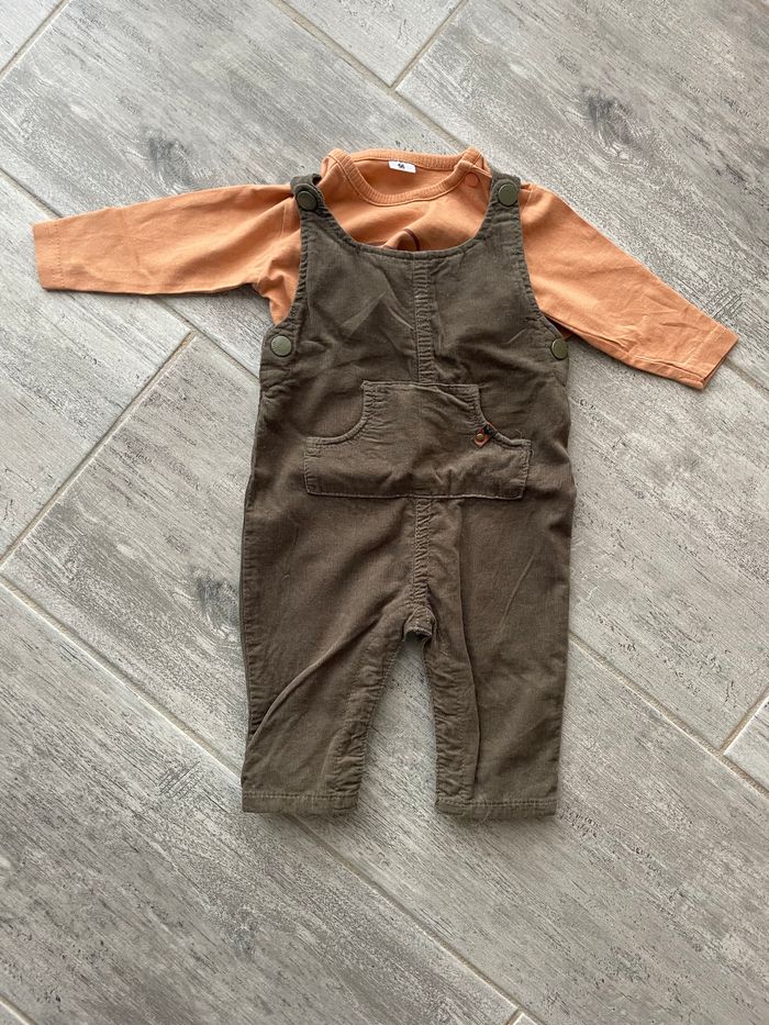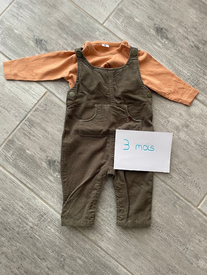 Ensemble zeeman 3 mois Salopette kaki Tee shirt manche longue orange Très bon état