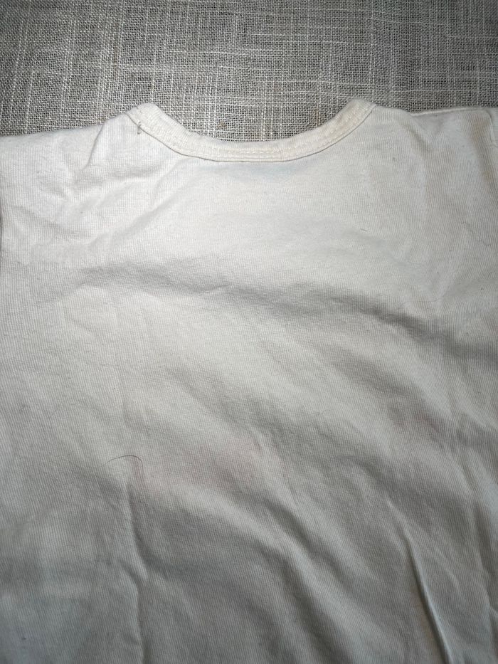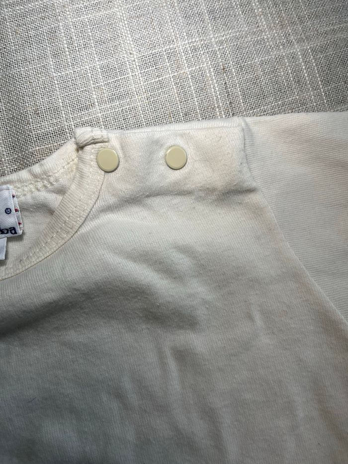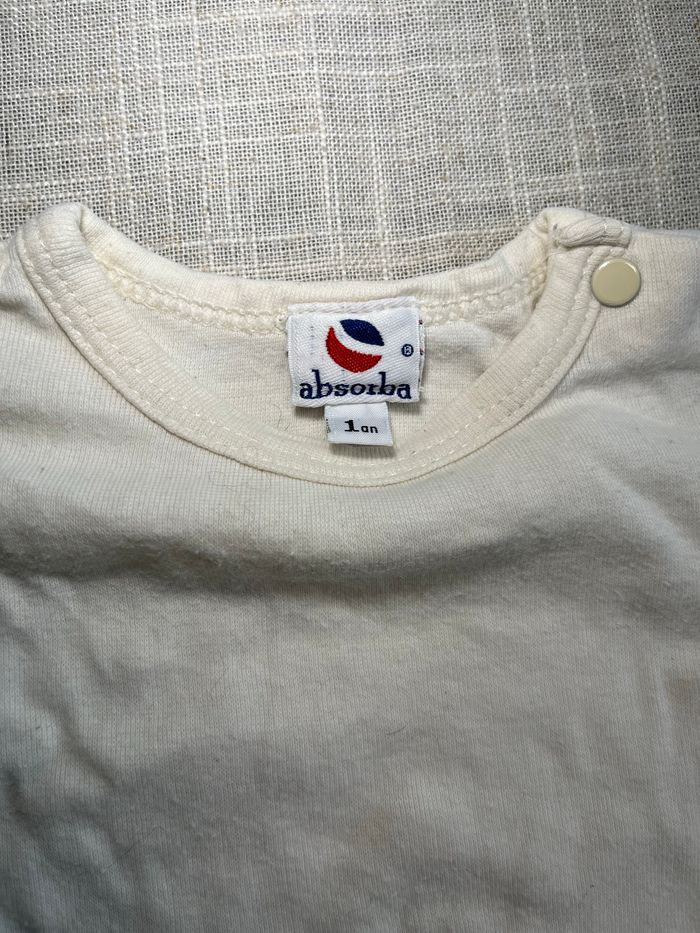 T-shirt à manches courtes Fermeture par boutons pression, légèrement jauni au niveau des pressions Taille 12 mois Marque Absorba Groupez vos achats pour profiter des remises activées sur les lots et réduire vos frais de port