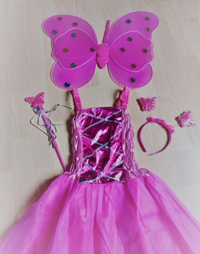 Déguisement robe aile de papillon rose et accessoires 5-6ans - photo numéro 1